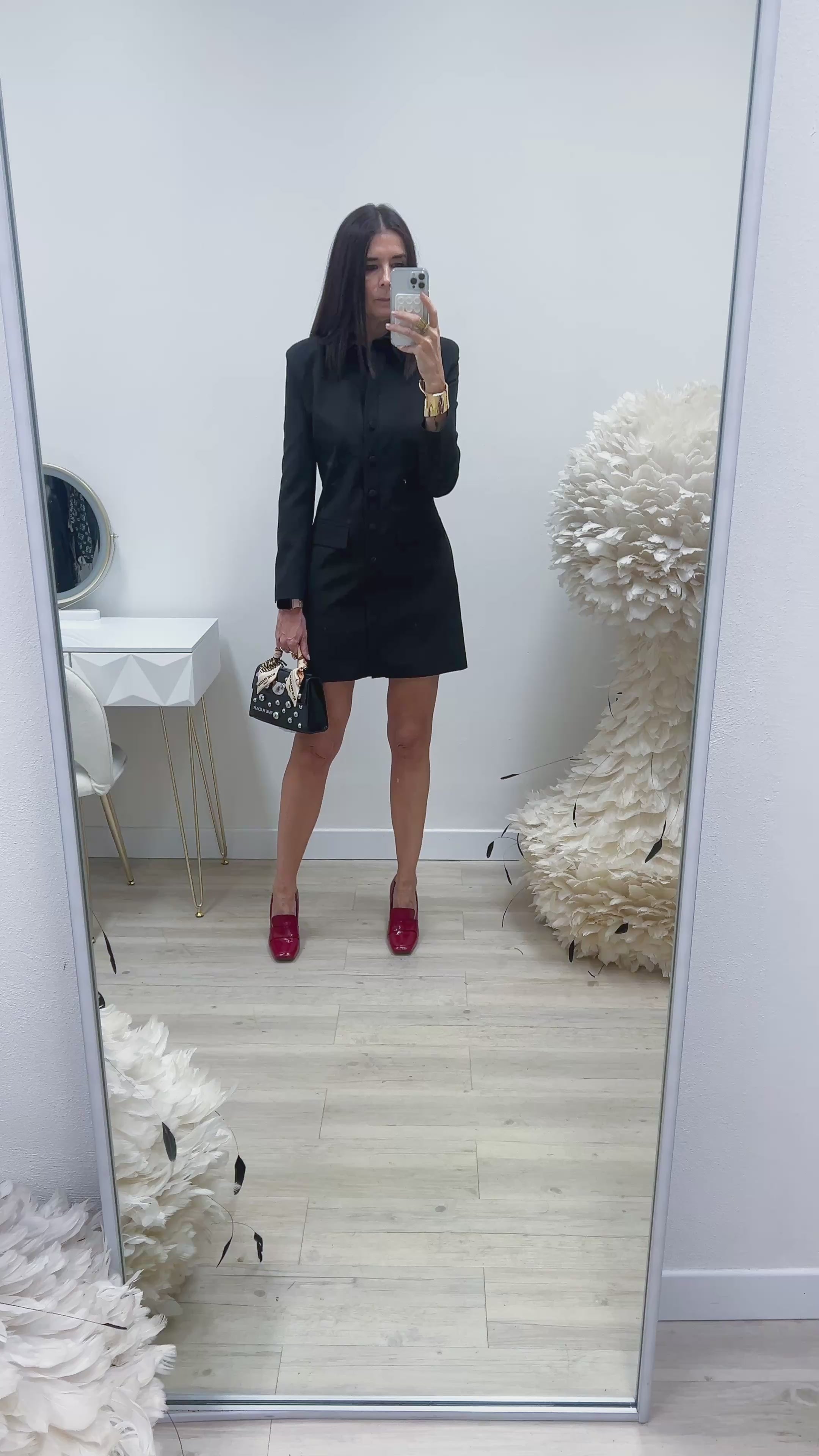ABITO GIACCA, MINI, MANICHE LUNGHE, BOTTONI  RIVESTITI IN TESSUTO CENTRALI, COLLO CLASSICO, TASCHE CON PATTINA