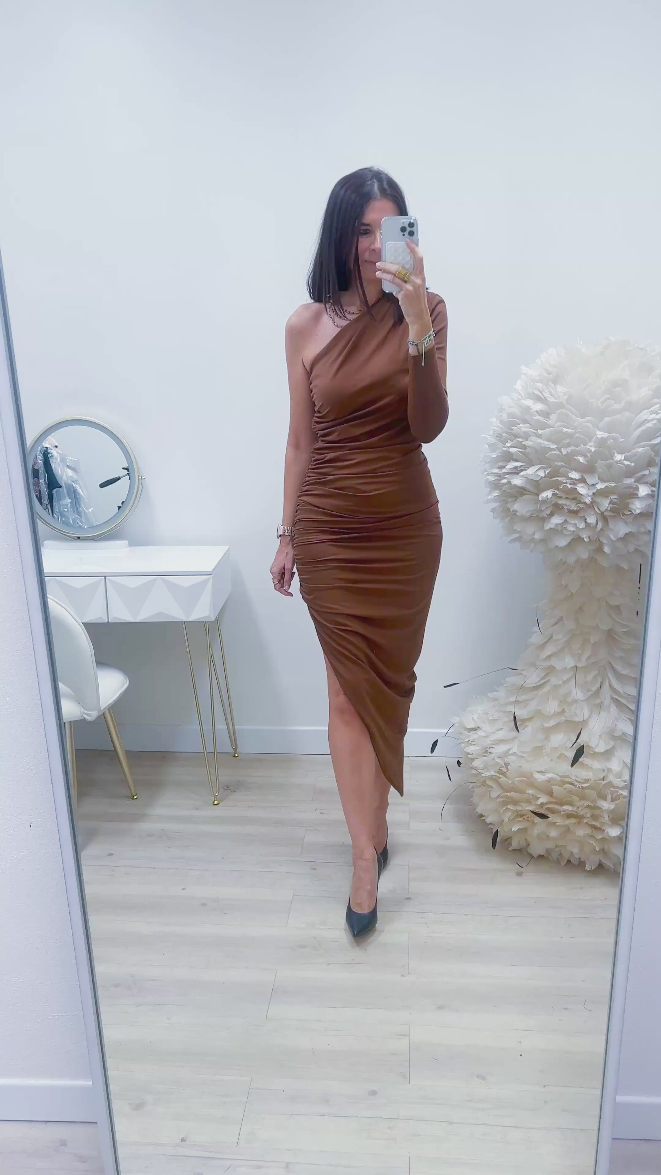 ABITO MONOSPALLA DRAPPEGGIATO COLOR CACAO