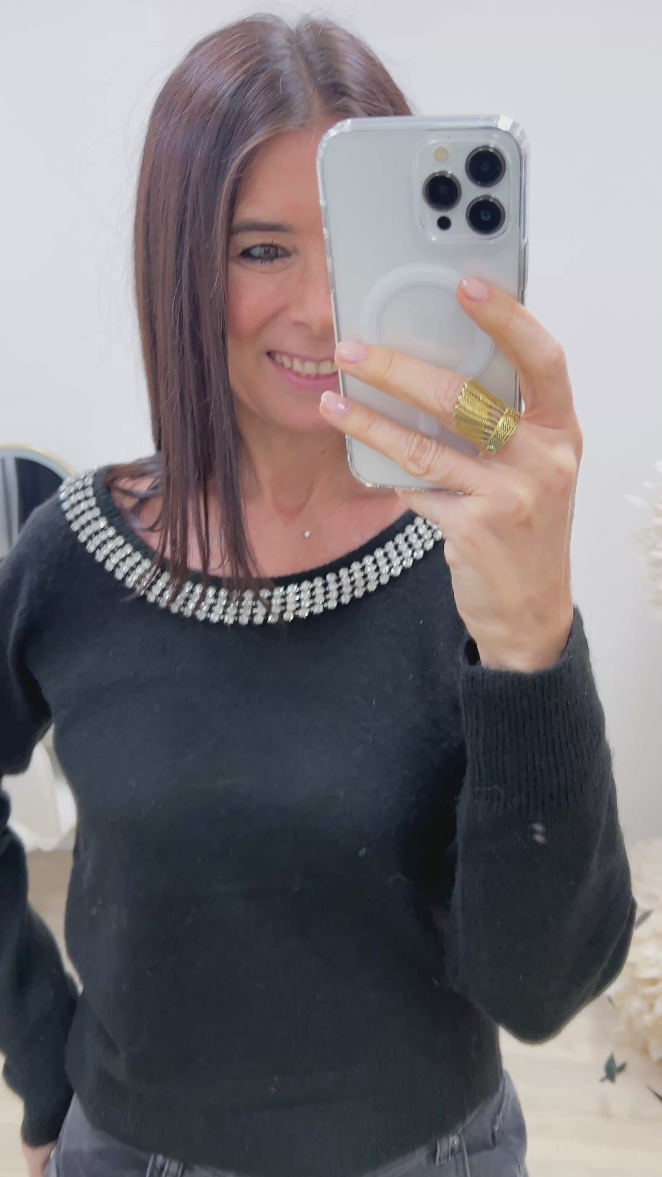 Maglione scollo a barca con strass