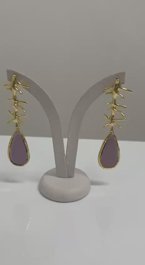 ORECCHINI PENDENTI CON GOCCIA FINALE COLOR MALVA E LUNEGHEZZA RAMIFICATA
